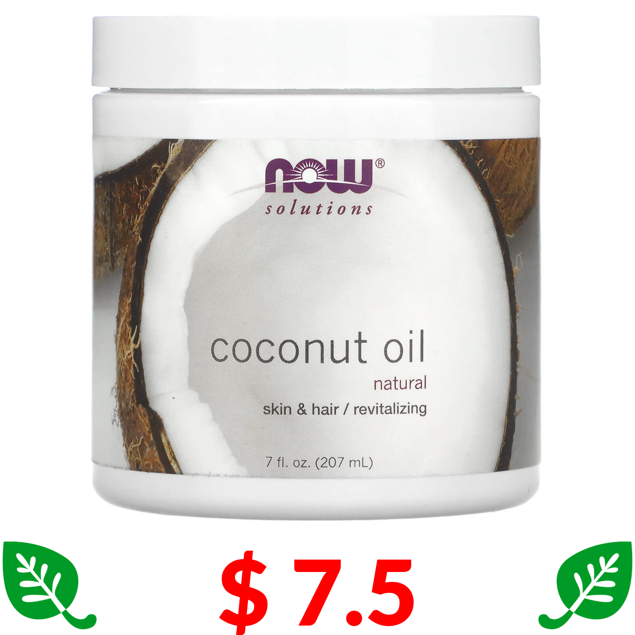 $ 7.5 NOW Foods, Solutions, Coconut Oil, Natural, 7 fl oz (207 ml)