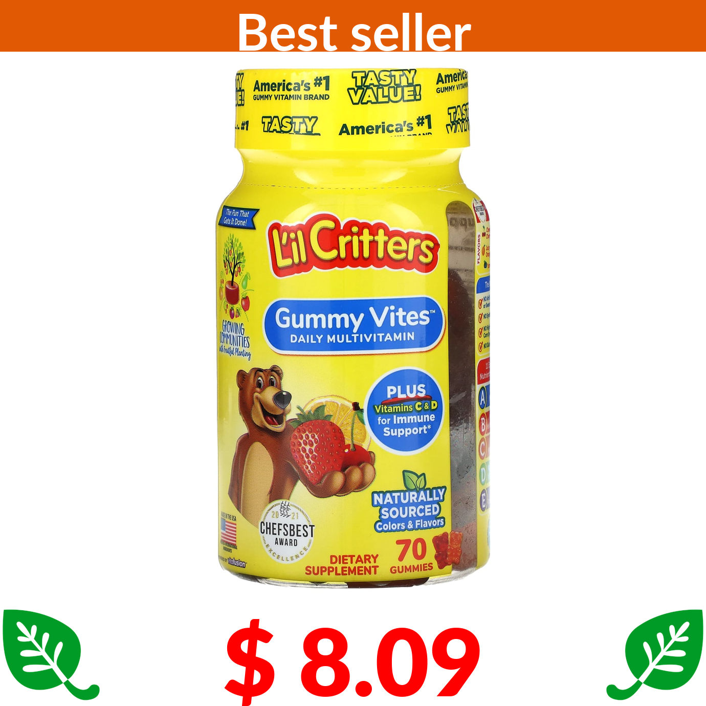 $ 8.09 L'il Critters, Gummy Vites Daily Multivitamin, 70 Gummies