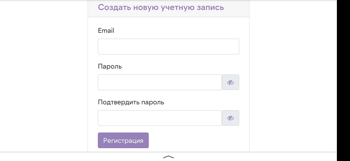 Введите в соответствующие поля адрес электронной почты, на которую будет зарегистрирован ваш аккаунт, и пароль для входа в личный кабинет, а также подтвердите пароль ещё раз. При нажатии на кнопку «Регистрация» вы получите на адрес почты извещение о том, что ваш доступ к сайту открыт.