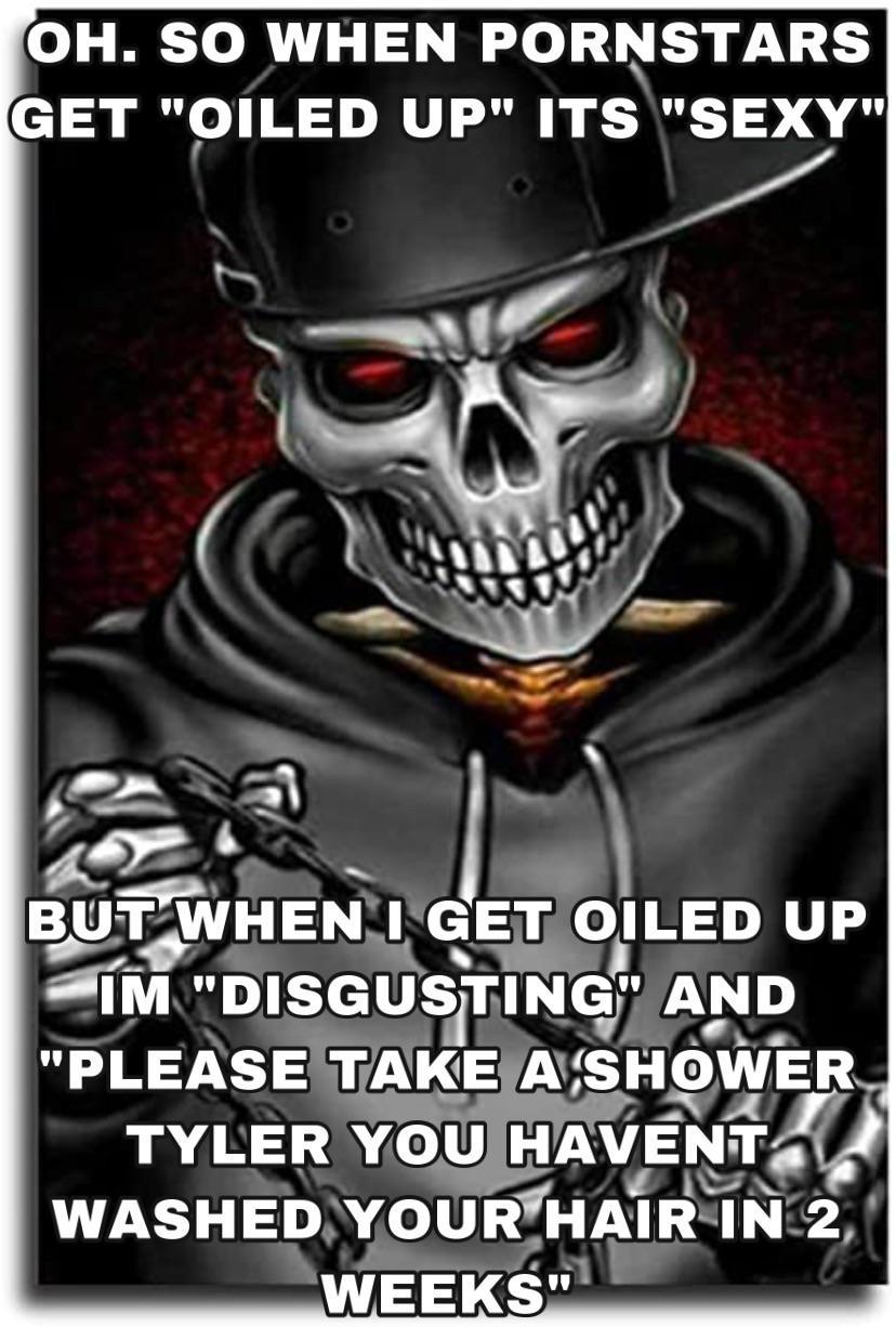 getting oiled up and taking it