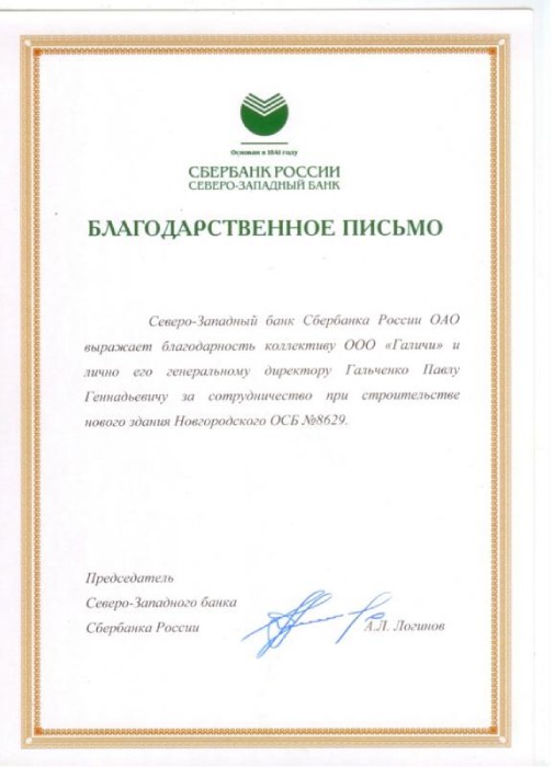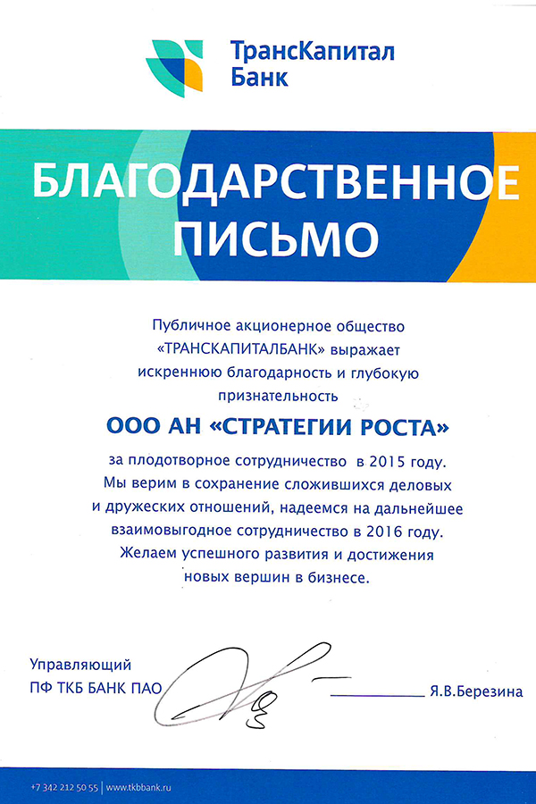 годарность клиентам банка