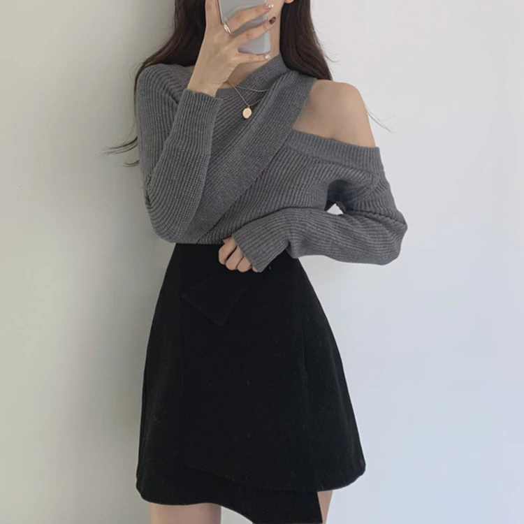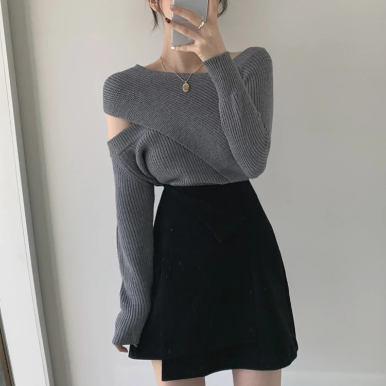 «gray New 2022 Winter Spring Women Sweater Knitted Cutout Sexy Off Shoulder Cross Korean Style Wild Warm Lady Tops SW0315» по лучшей цене на рынке! Всего за 21$ (1995рублей)