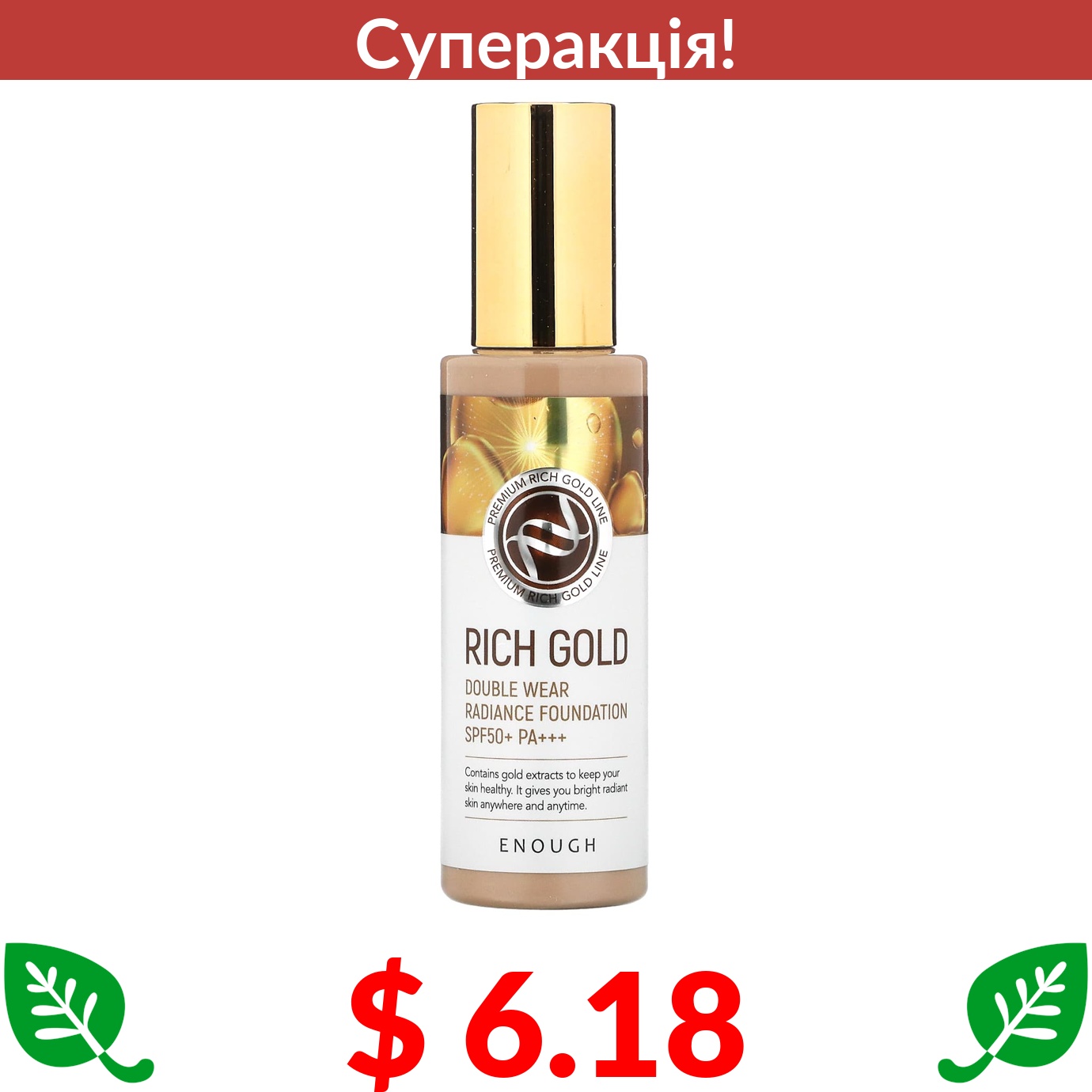 $ 6.18 Enough, Rich Gold, Double Wear Radiance Foundation, SPF50+ PA+++, #23, 3.53 oz (100 g)