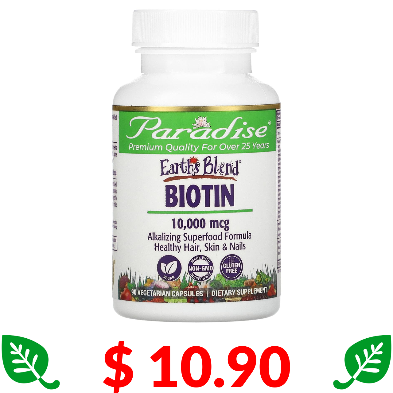 $ 10.90 Paradise Herbs, Earth's Blend, суміш із біотином, 10 000 мг, 90 вегетаріанських капсул
