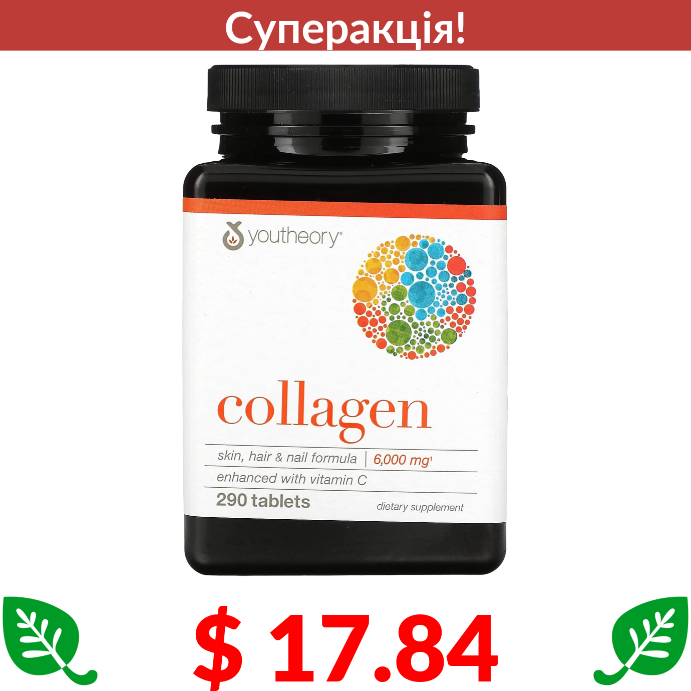 $ 17.84 Youtheory, колаген, 1000 мг, 290 таблеток