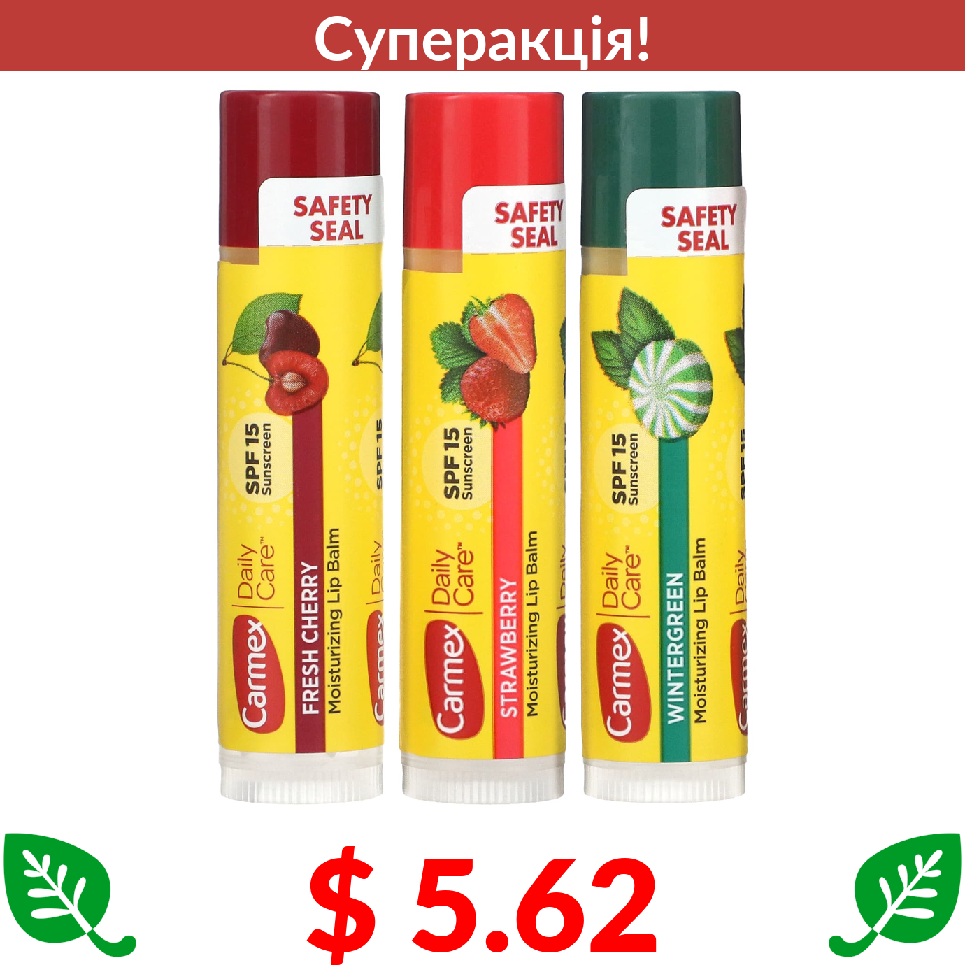 $ 5.62 Carmex, Daily Care, зволожуючий бальзам для губ, асорті, SPF 15, 3 од. в упаковці, 4,25 г (15 унцій)