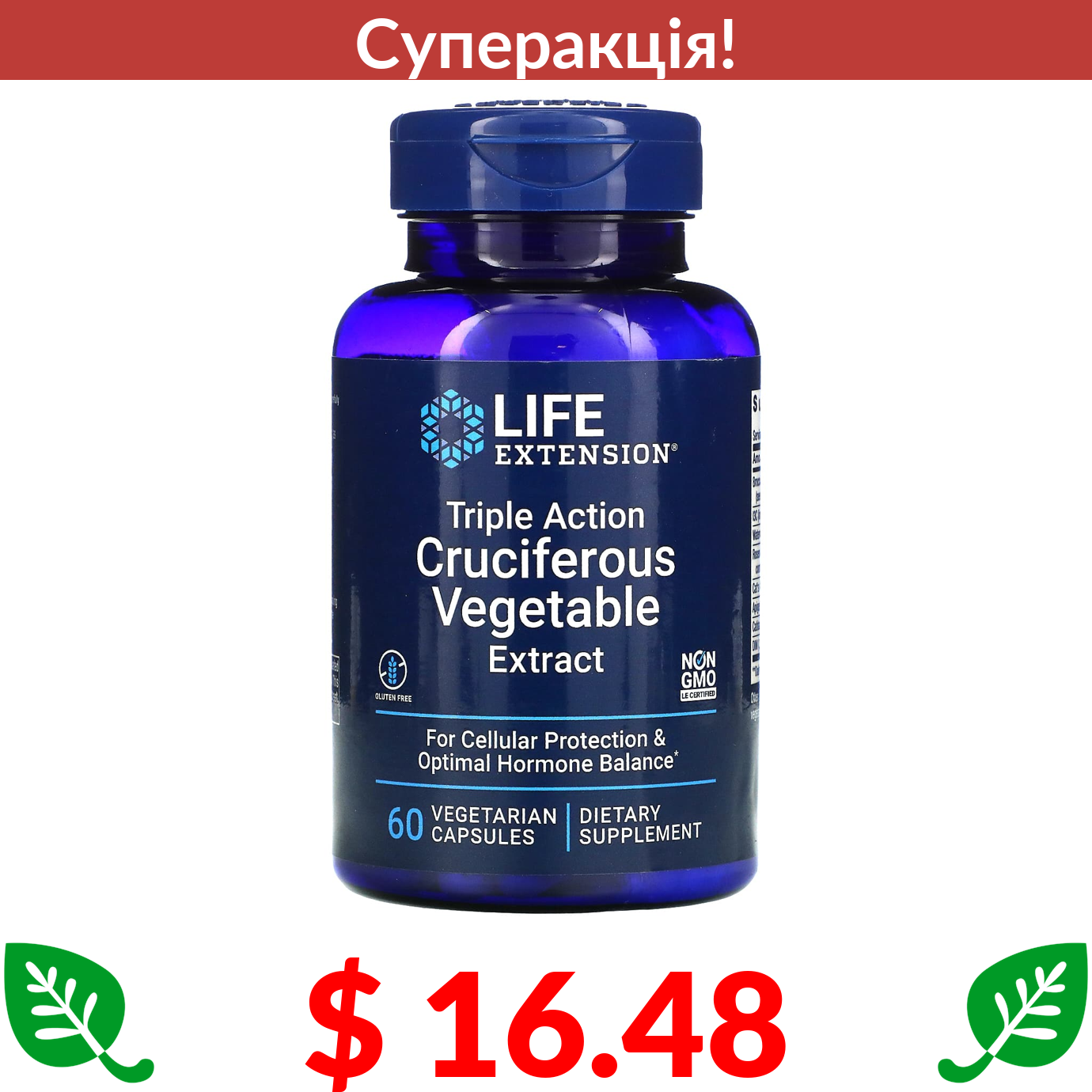 $ 16.48 Life Extension, екстракт хрестоцвітих овочів потрійної дії, 60 вегетаріанських капсул