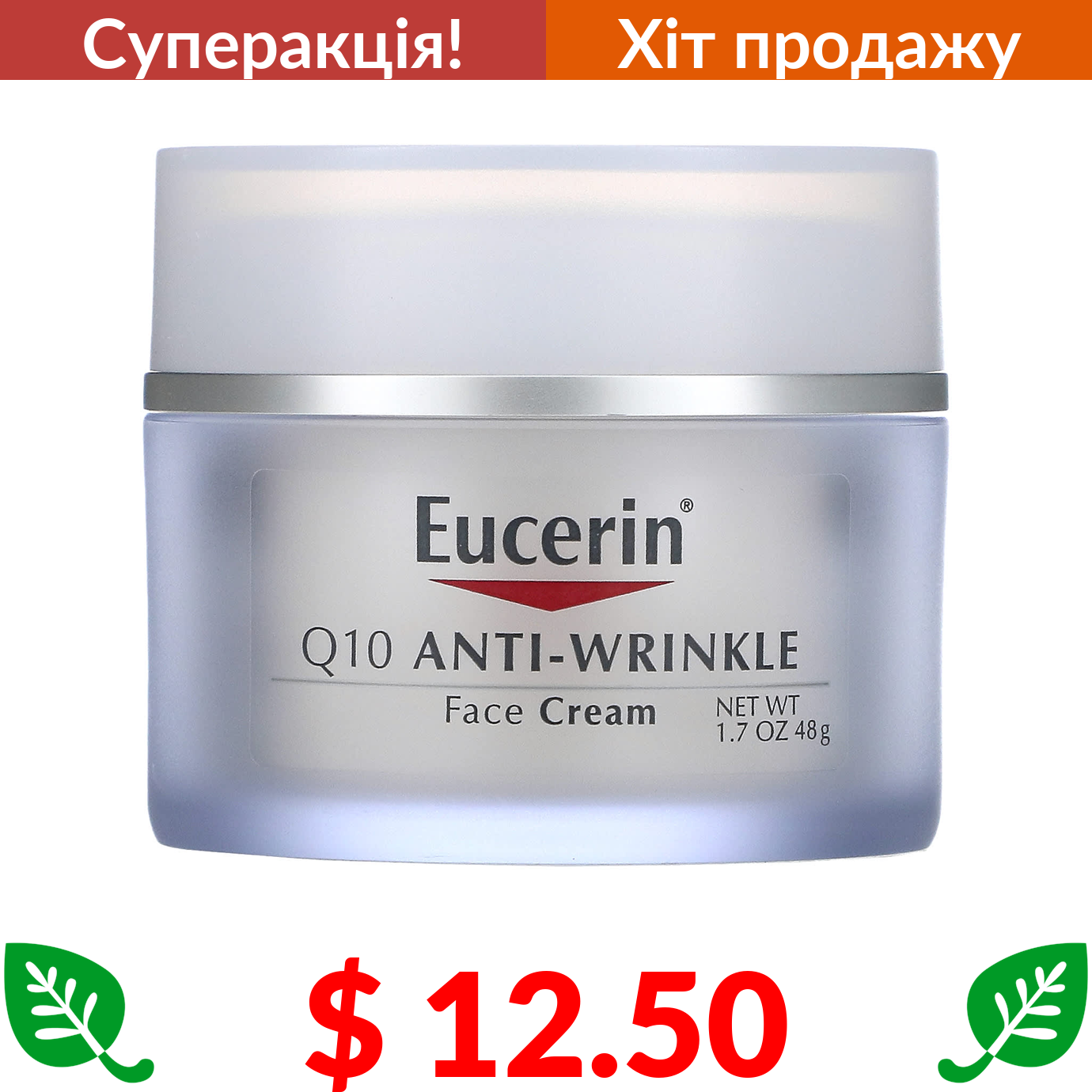 $ 12.50 Eucerin, крем для обличчя проти зморшок з коензимом Q10, 48 г (1,7 унції)