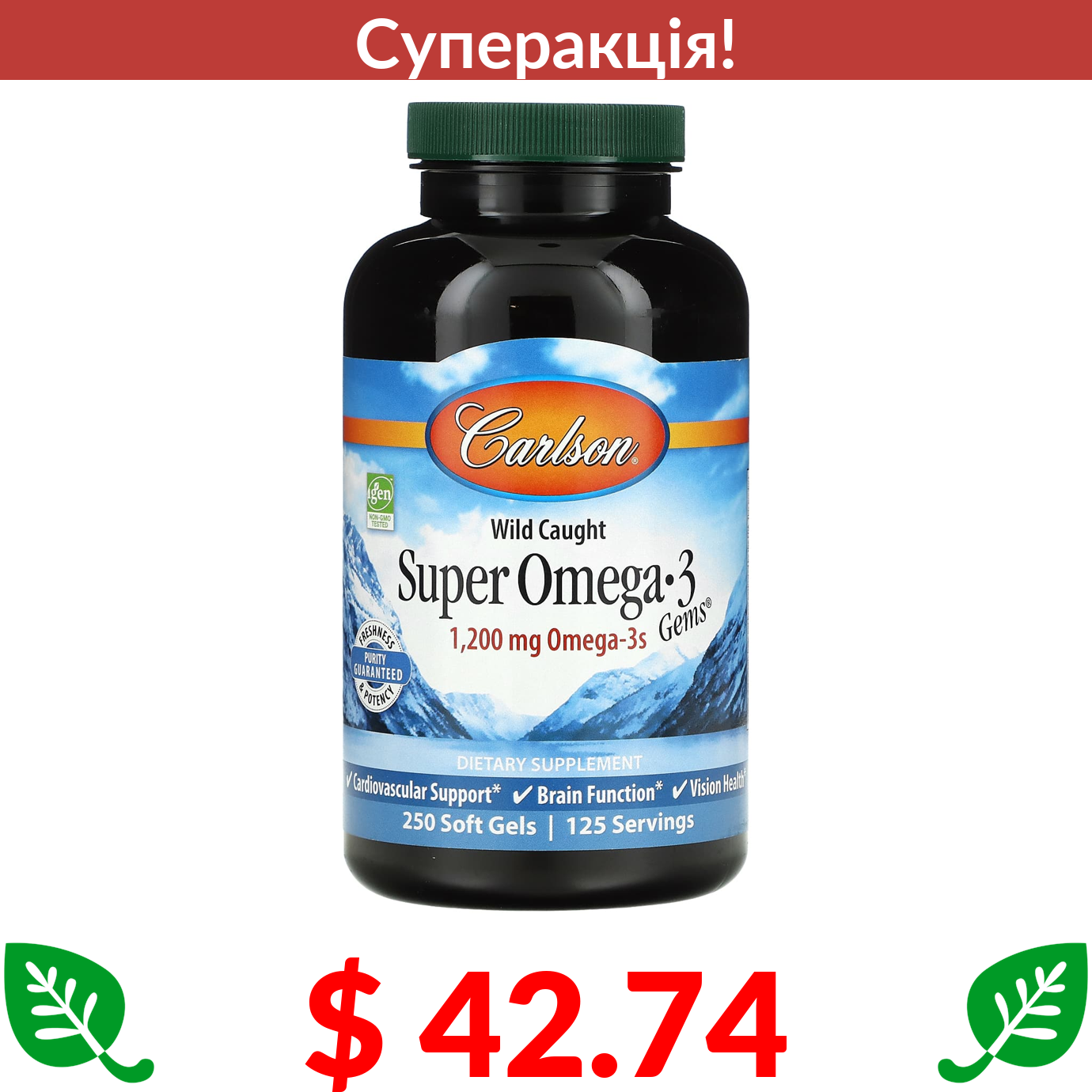 Лише $15.3 - Комбопропозиція (економія $3.0) купуйте разом з California Gold Nutrition, омега-3, риб’ячий жир преміальної якості, 180 мг ЕПК / 120 мг ДГК, 100 капсул із риб’ячого желатину