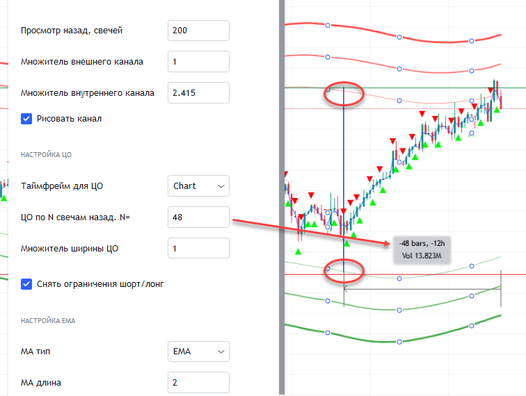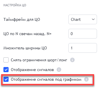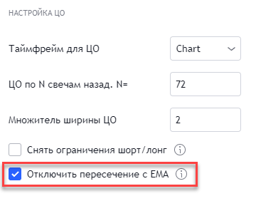 - Настройка момента в прошлом, на который настраиваются ЦО. По опыту работающих с ЦО, эти ограничения могут пересматриваться вручную, например, раз в 6, 12 или 24 часа. Указывается отступ в прошлое на N свечей.
