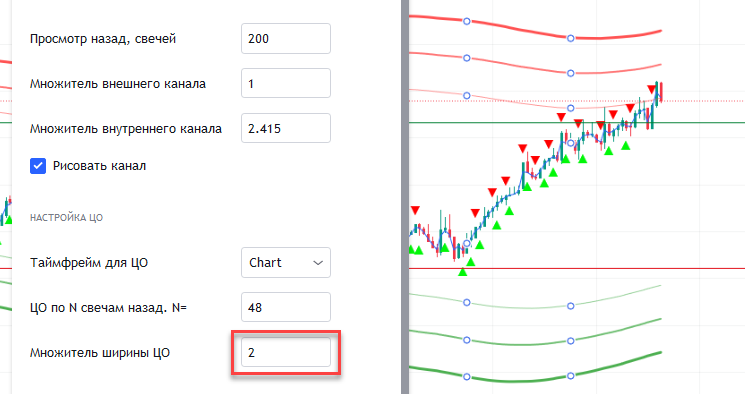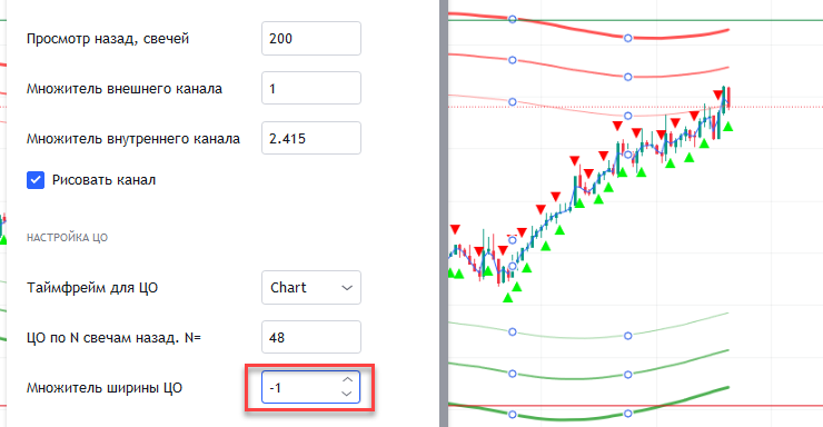 - Стандартные настройки отображения канала между зонами, которыми вы можете менять вид и ширину канала. Также влияет на ЦО. ЦО можно настраивать на ТФ, отличный от ТФ на графике - например, график 15М, а ЦО настроить на 1H