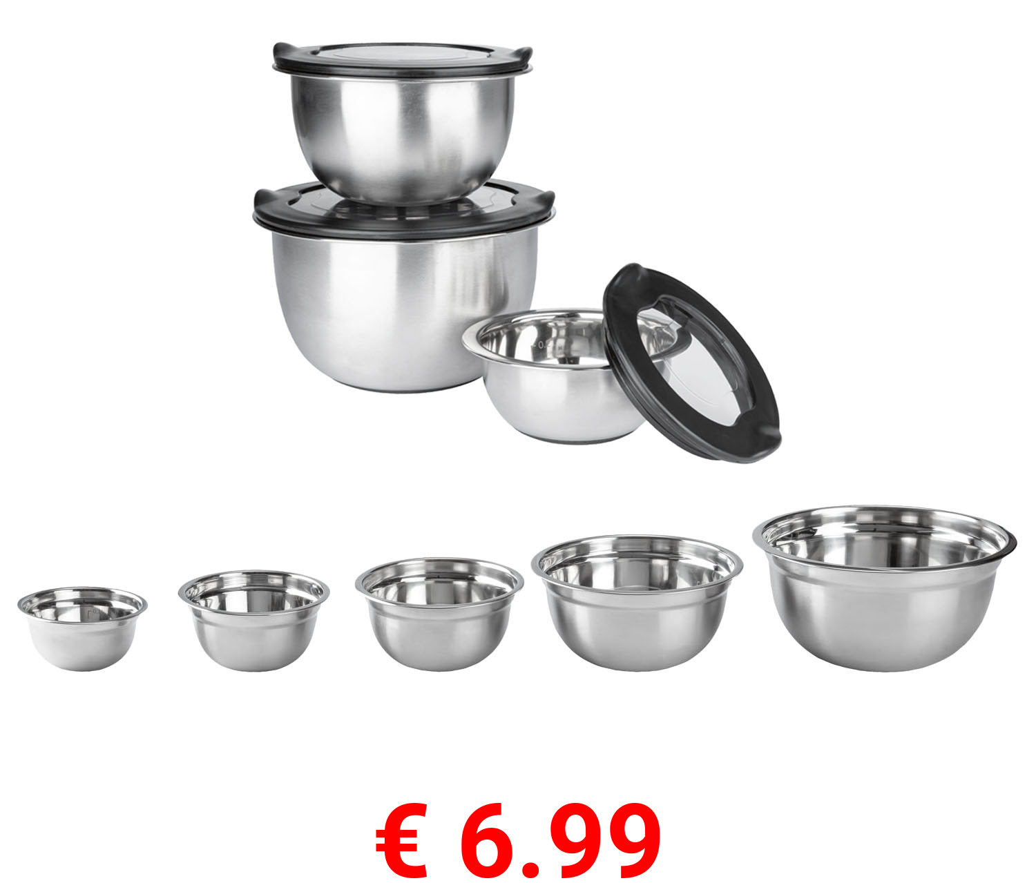 € 6.99 ERNESTO® Edelstahl-Rührschüssel-Set, stapelbar