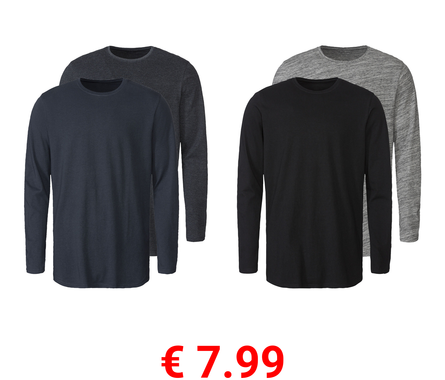 € 7.99 LIVERGY® Herren Langarmshirts, 2 Stück, mit Rundhalsausschnitt