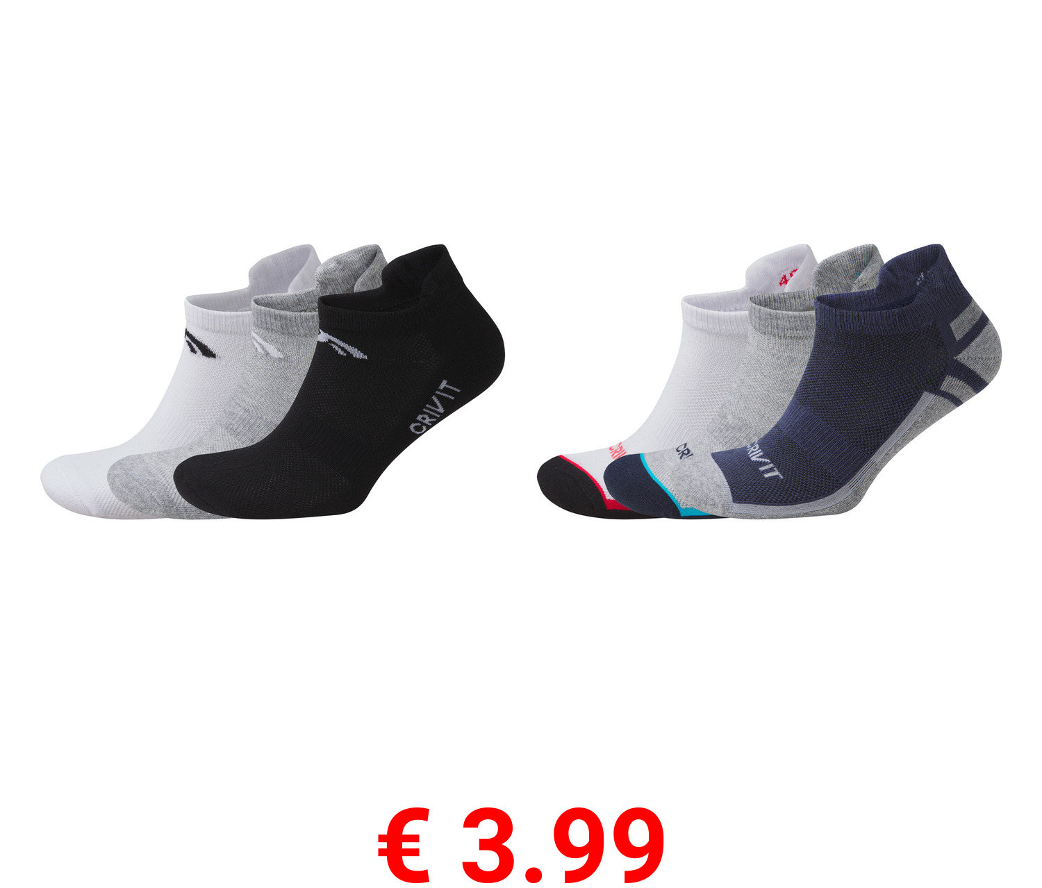 € 3.99 CRIVIT Herren Sport-Sneakersocken, 3 Paar, hoher Baumwollanteil