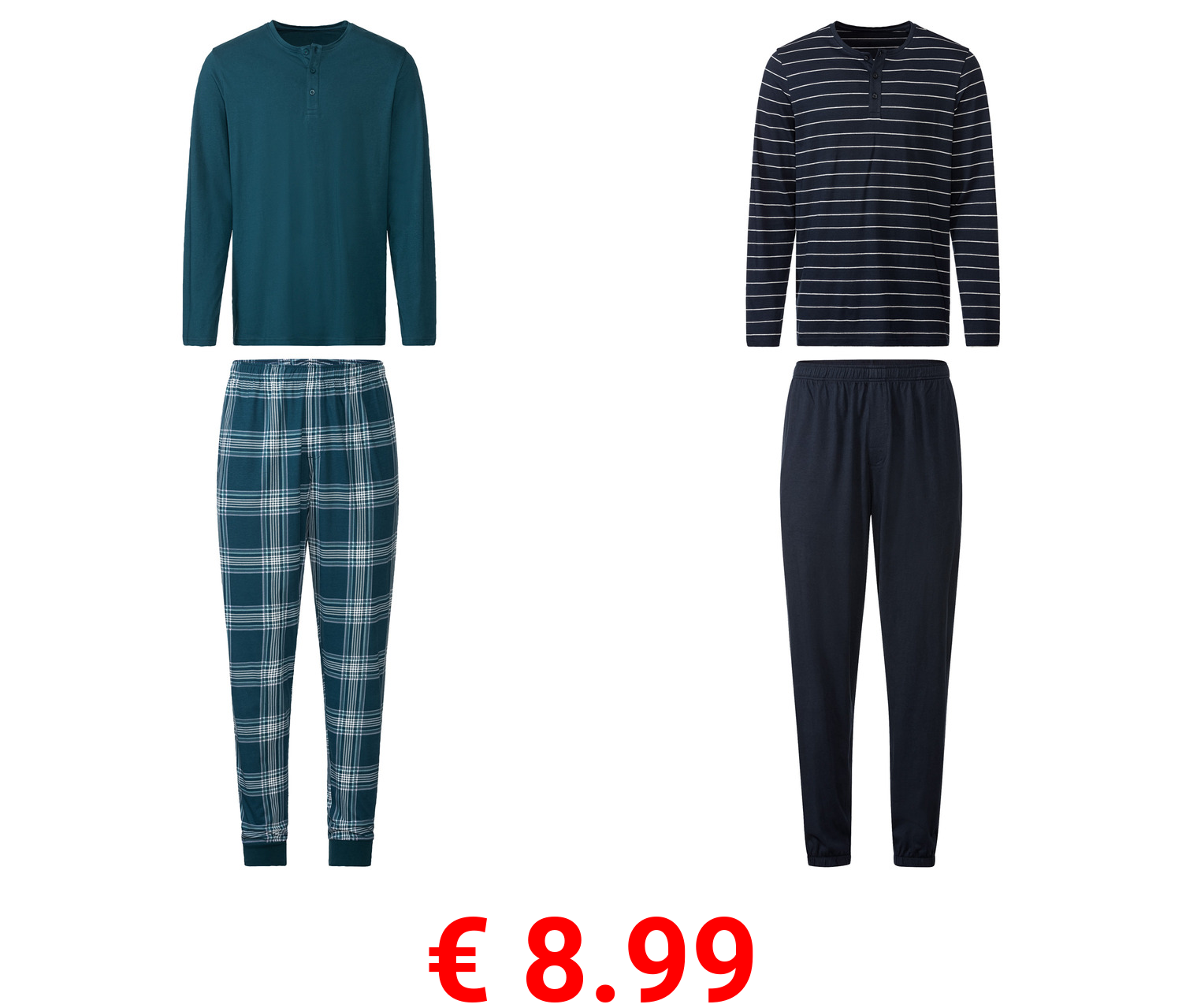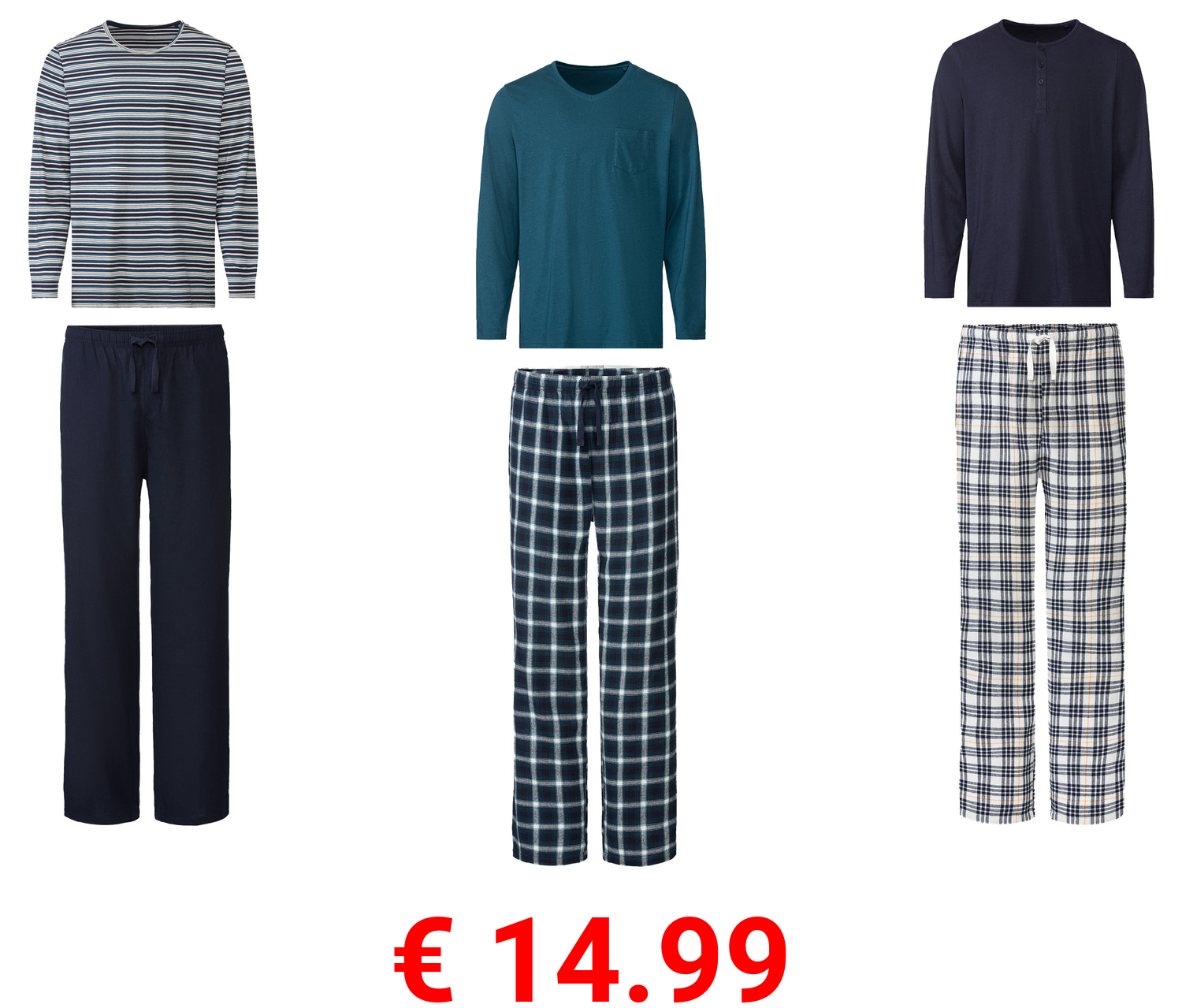 € 8.99 LIVERGY® Herren Pyjama, lang, aus reiner Baumwolle