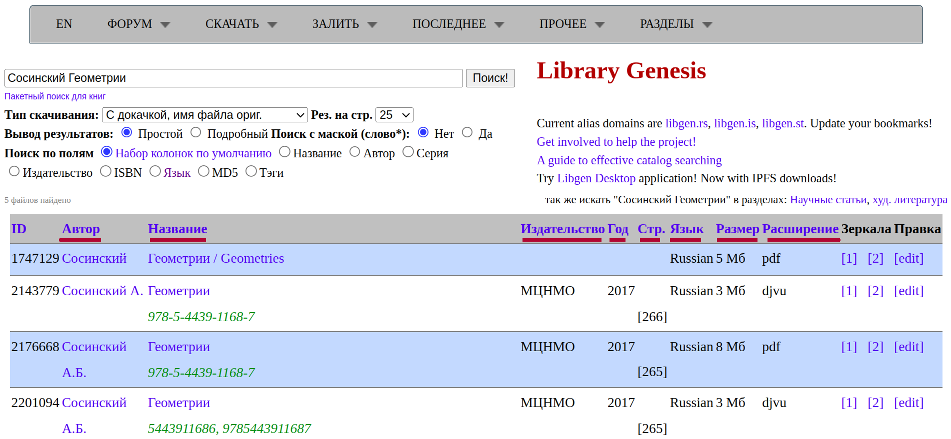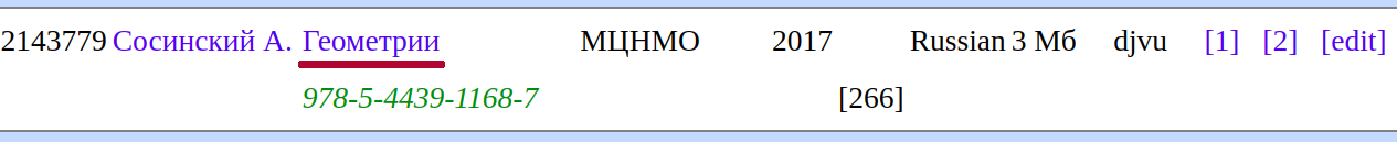 Например, давайте найдём замечательную книгу "Геометрии" автора А. Б. Сосинского: