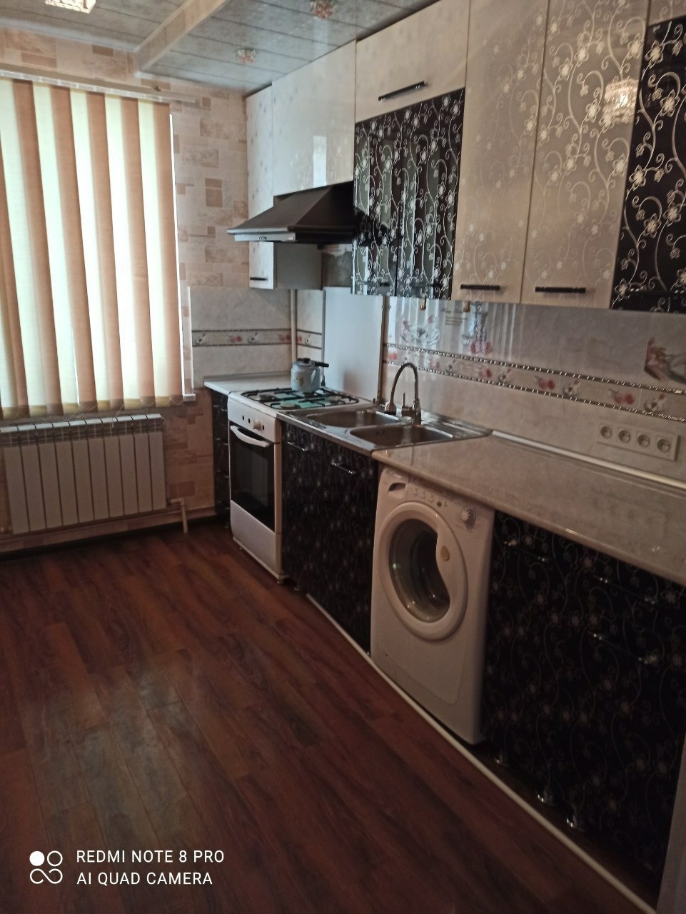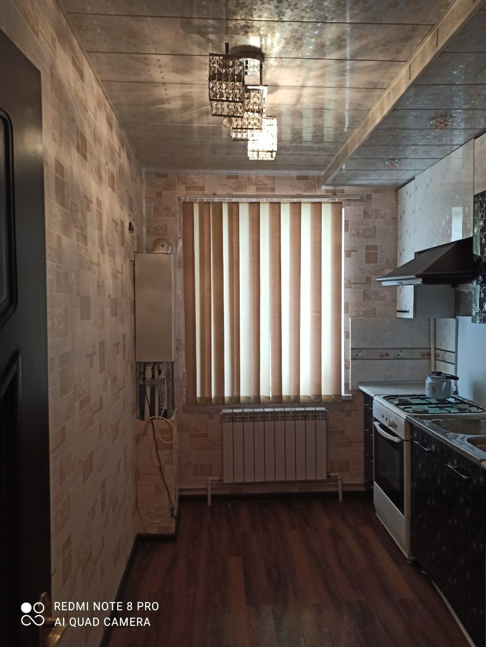 Ишинде бар: Аристон катёл (италиянский); кухонная мебел; газ плита; жалюзи (ҳәмме ханаларда); Ковролин менен төселген