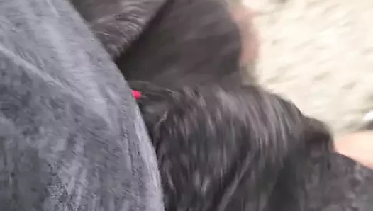 Japanese whore sucks dick in a public bus