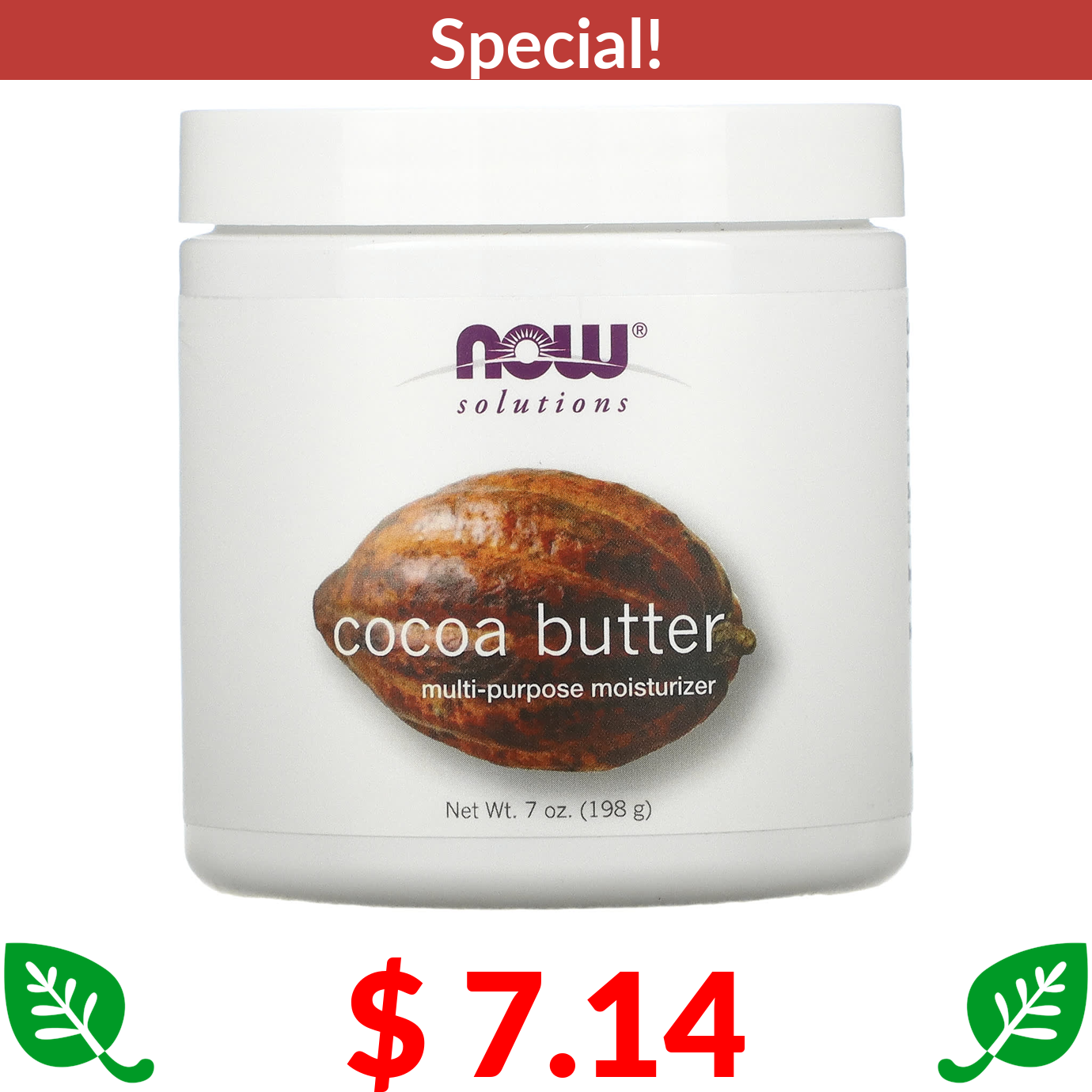 $ 7.14 NOW Foods, Solutions, Cocoa Butter, 7 oz (198 g)