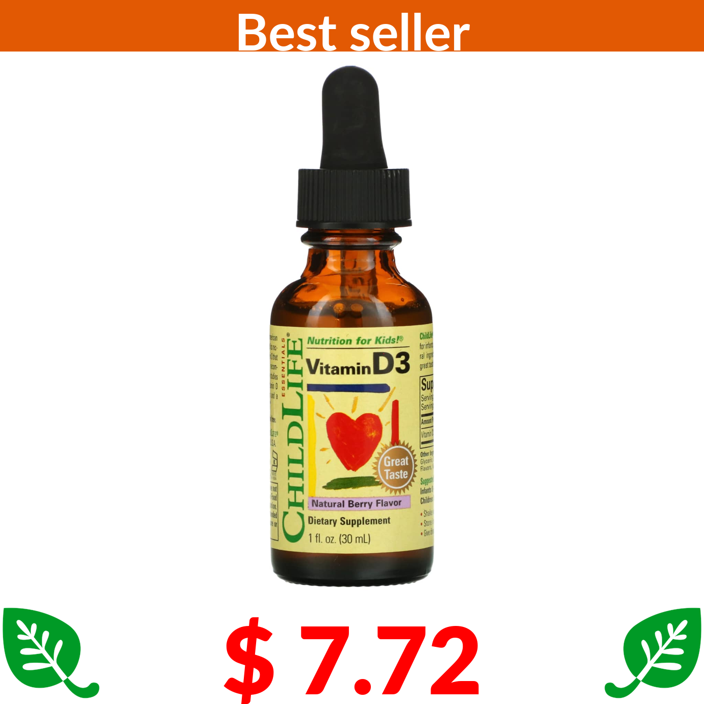 $ 7.72 ChildLife Essentials, Vitamin D3, Natural Berry, 1 fl oz (30 ml)