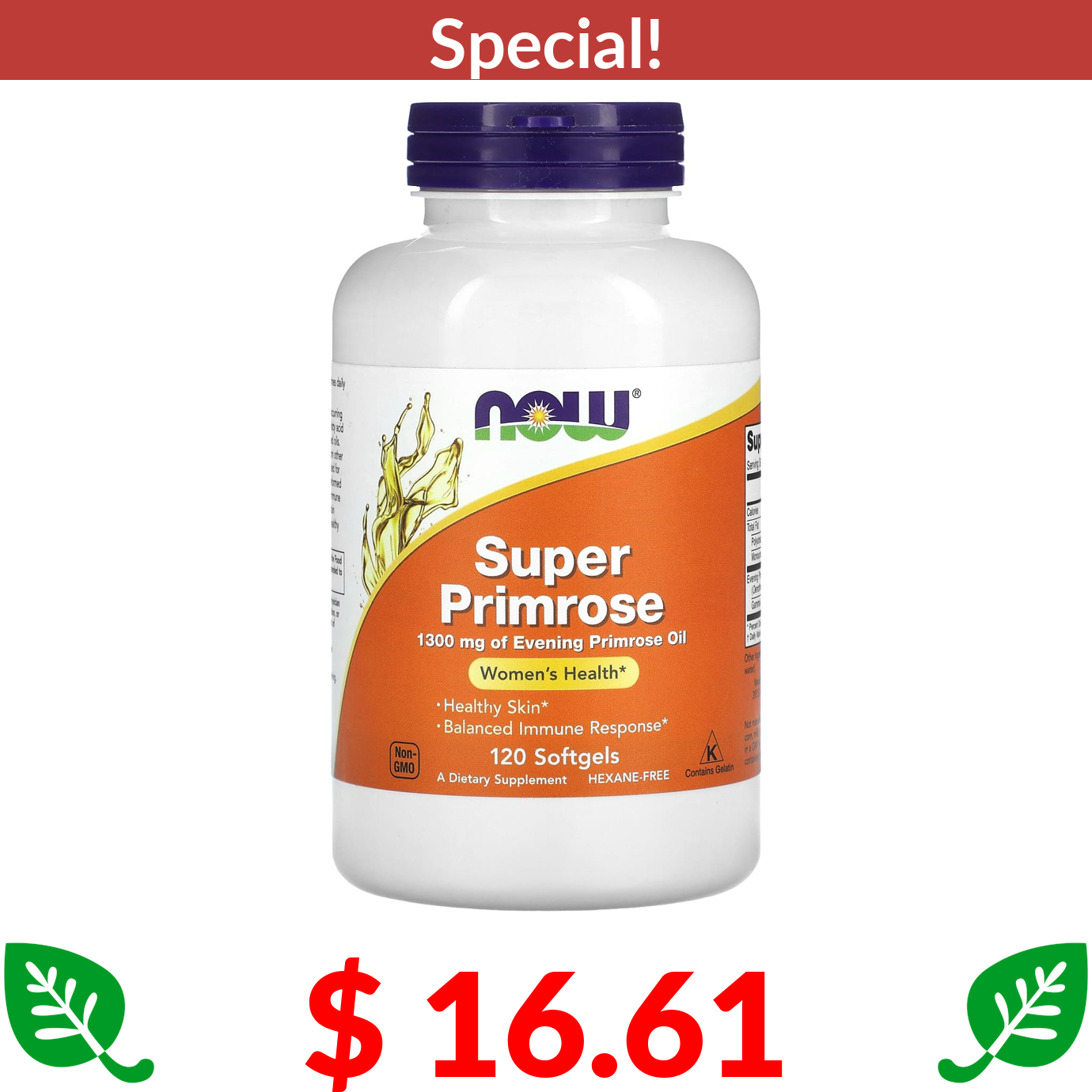 $ 16.61 NOW Foods, Super Primrose, 1,300 mg, 120 Softgels