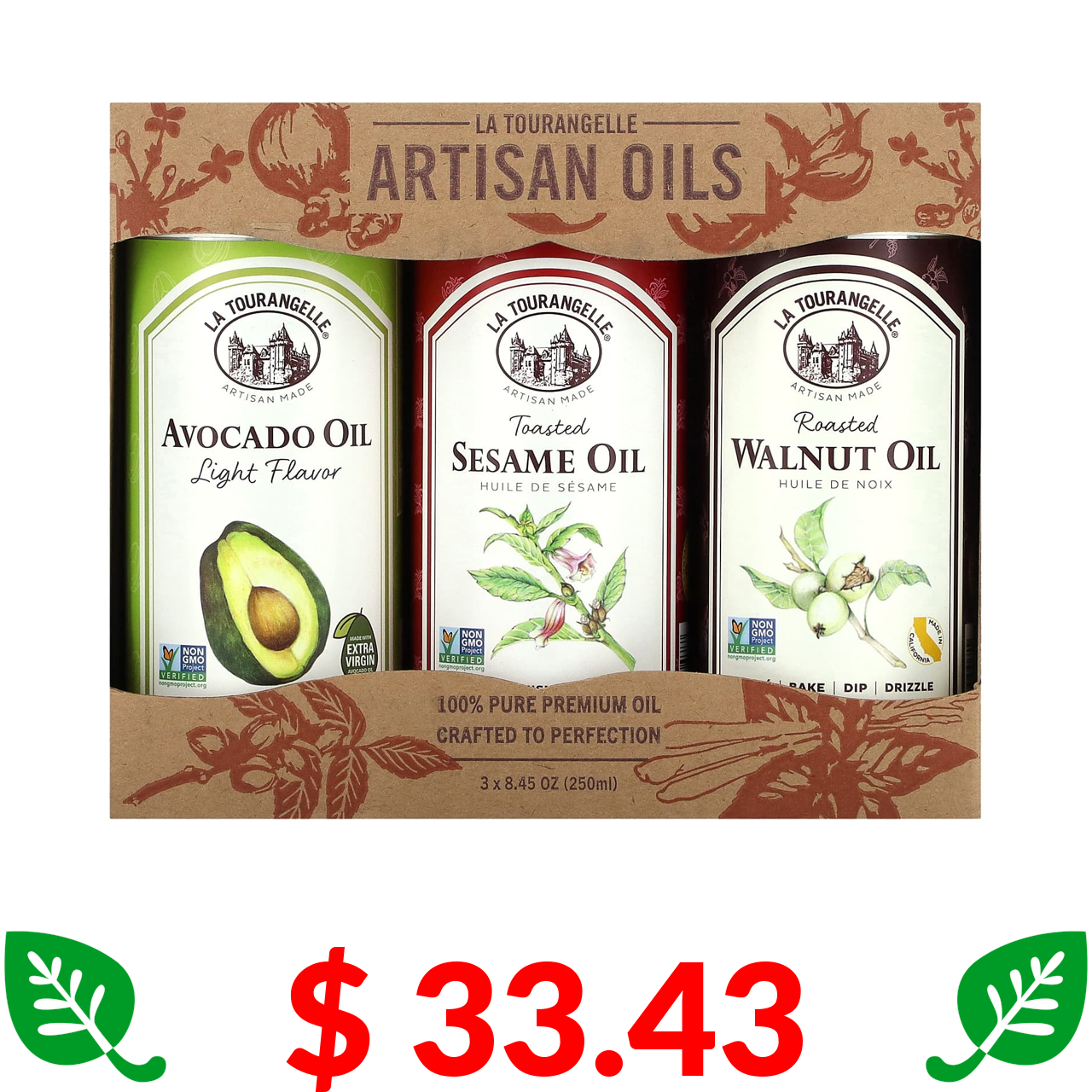 $ 33.43 La Tourangelle, LAT Favorites Trio Artisan Oils, 3 Count, 8.45 oz (250 ml) Each