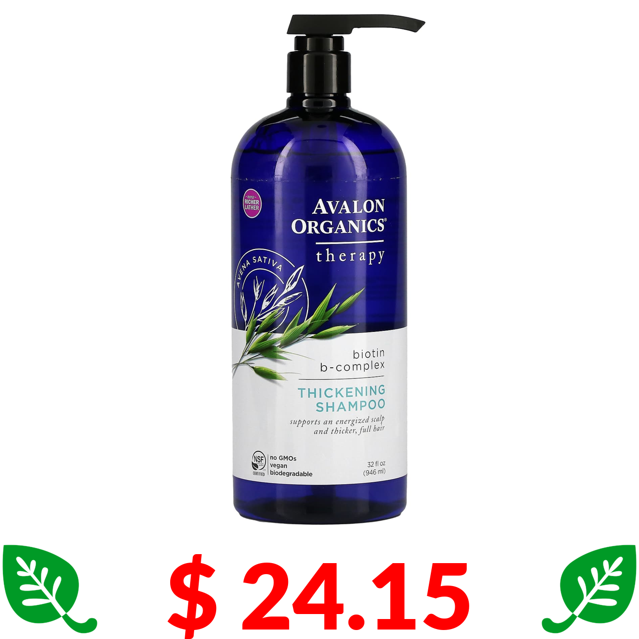 $ 24.15 Avalon Organics, Thickening Shampoo, Biotin B-Complex, 32 fl oz (946 ml)