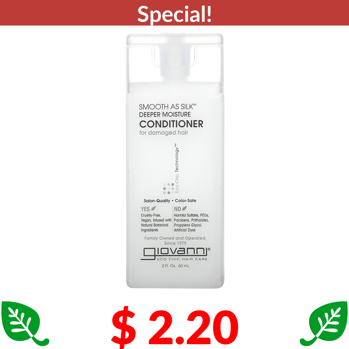 $ 2.20 Giovanni, Smooth As Silk, Deeper Moisture Conditioner, For Damaged Hair, 2 fl oz (60 ml)