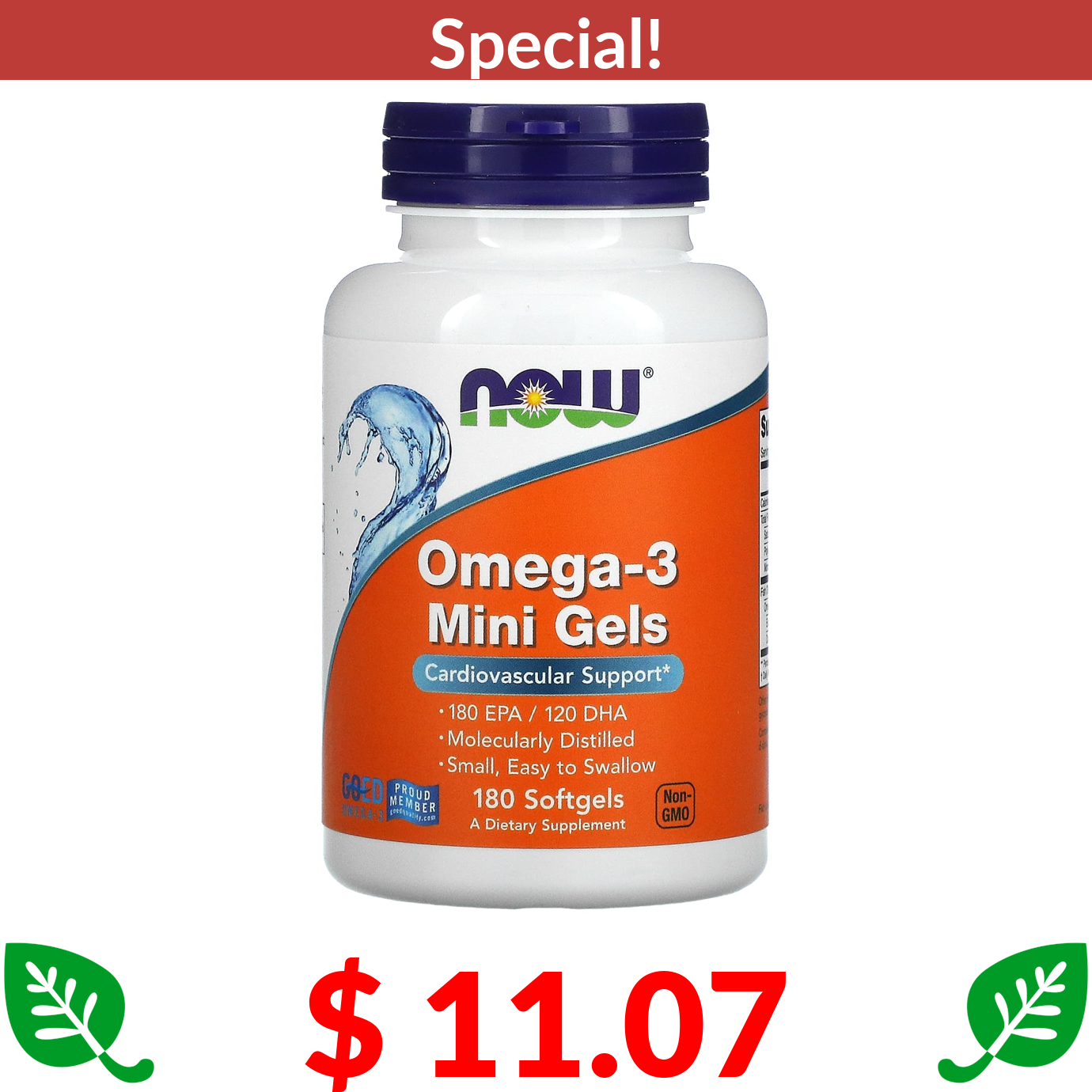 $ 11.07 NOW Foods, Omega-3 Mini Gels, 180 Softgels