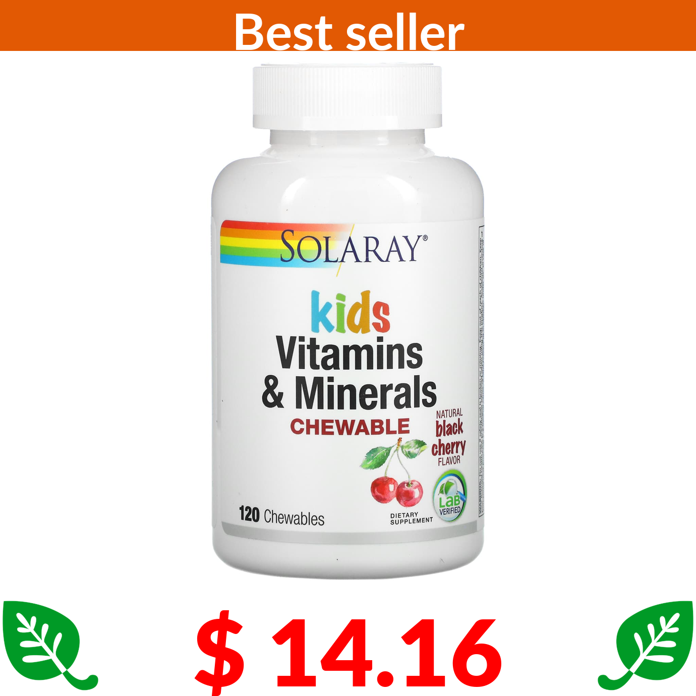 $ 14.16 Solaray, Kids Vitamins & Minerals, Chewable, Natural Black Cherry, 120 Chewables