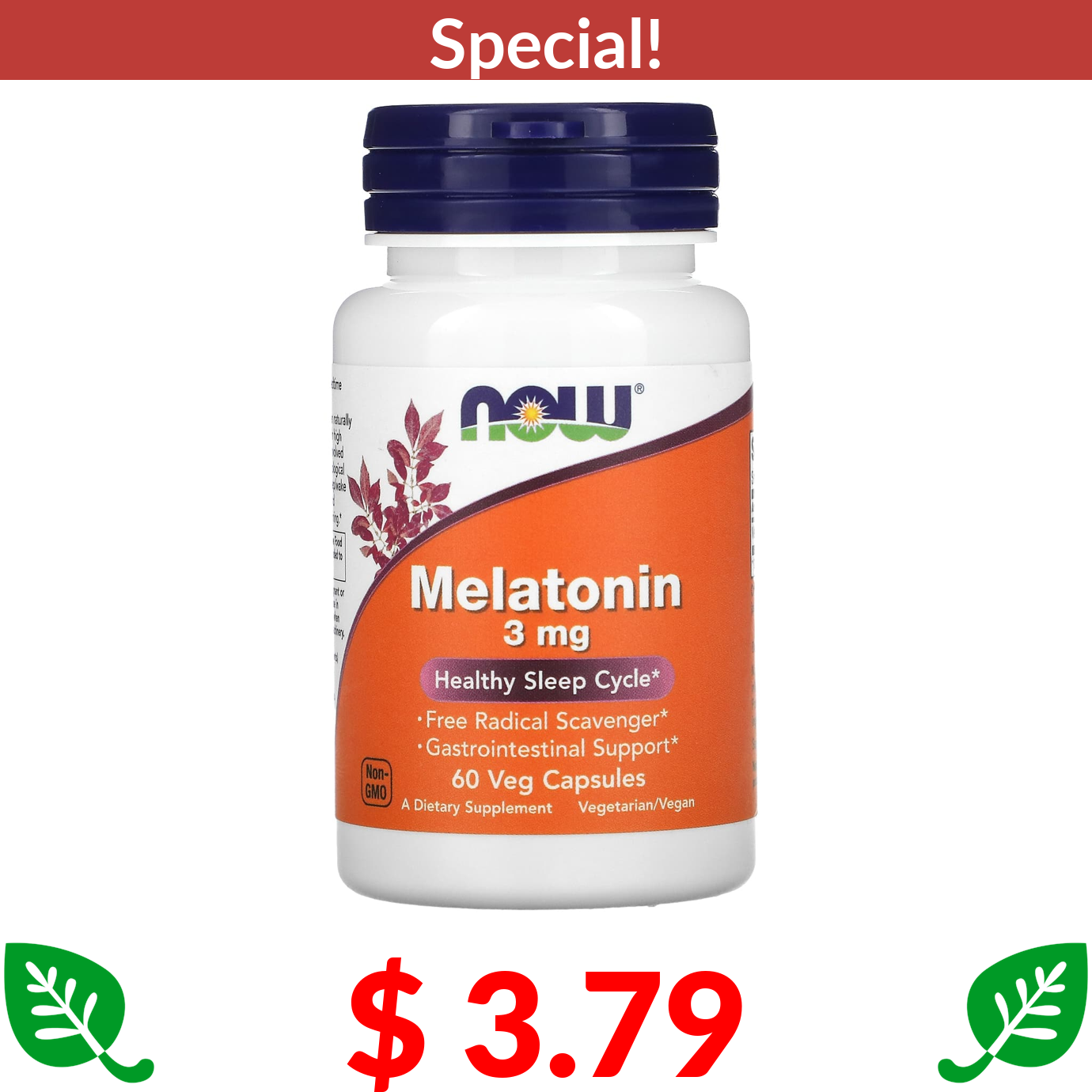 $ 3.79 NOW Foods, Melatonin, 3 mg, 60 Veg Capsules