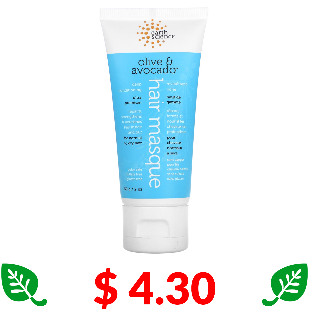 $ 4.30 Earth Science, Deep Conditioning, Hair Masque, Olive & Avocado, 2 oz (59 g)