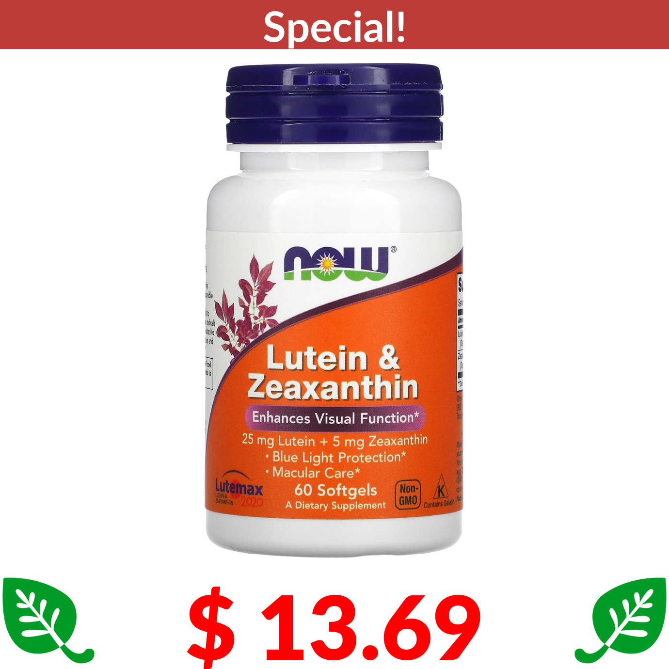 $ 13.69 NOW Foods, Lutein & Zeaxanthin, 60 Softgels