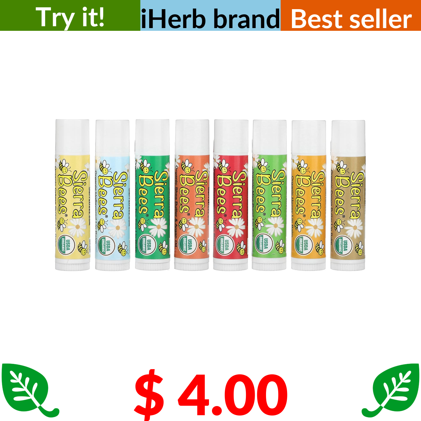 $ 4.00 Sierra Bees, Organic Lip Balms Combo Pack, 8 Pack, 0.15 oz (4.25 g) Each