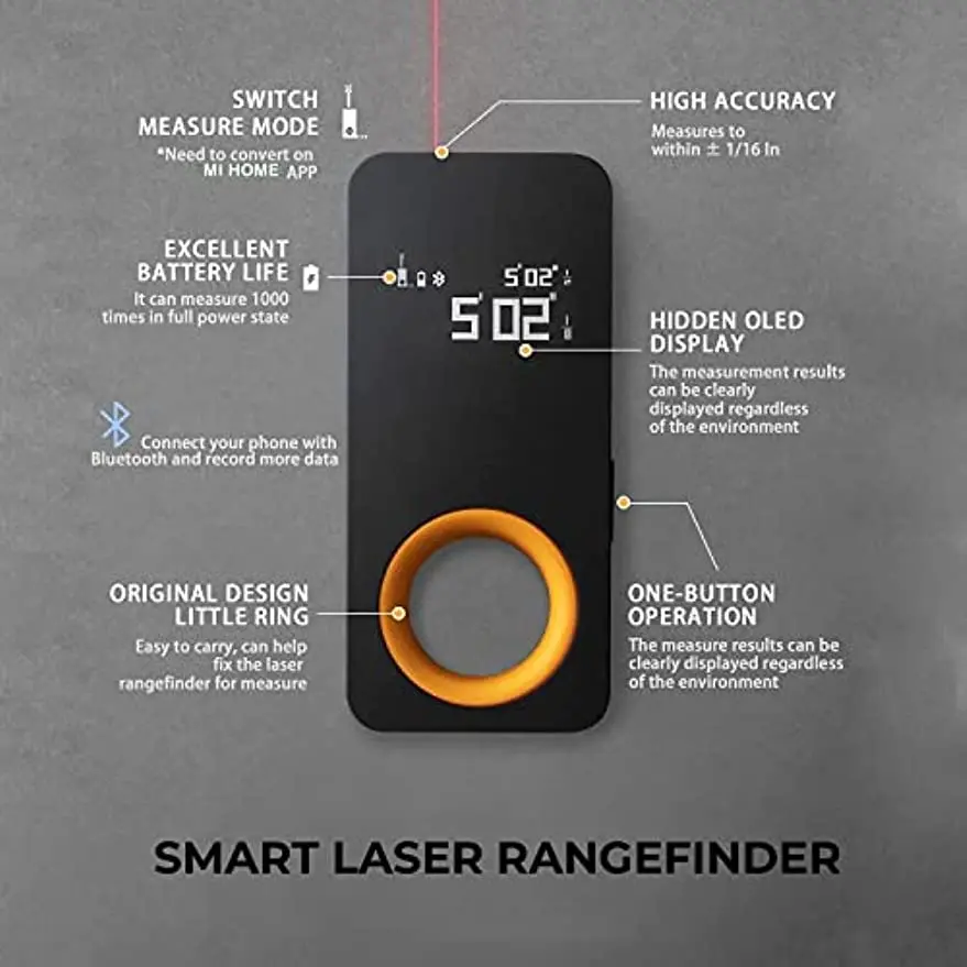 "iRing Laser Measurement Tool with Bluetooth Mini Size Minimalist Design Type-C Rechargeable Data Storage Low-Power Display" * Buy Now With Free Shipping Just For $37