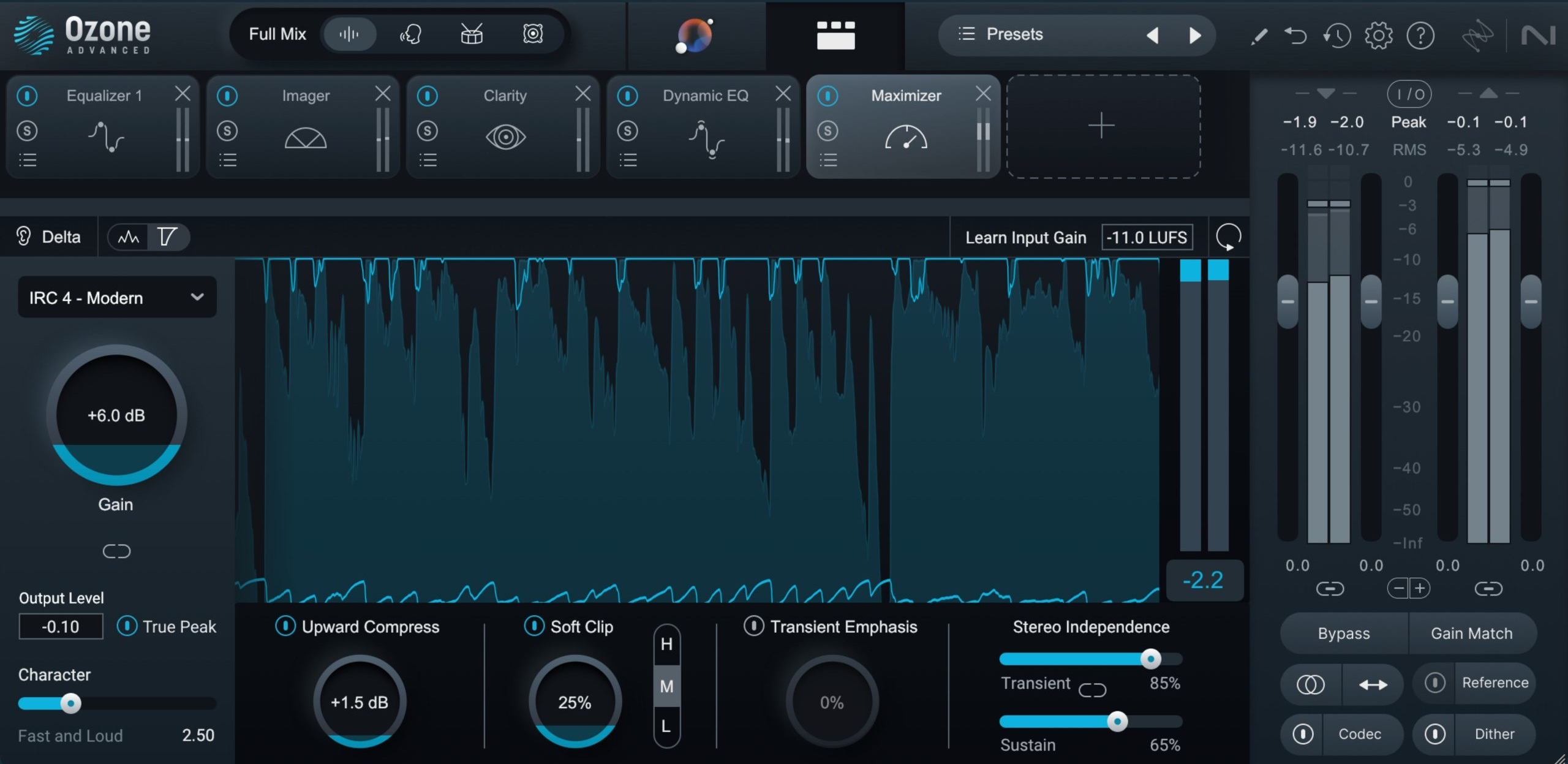 -Сделайте миксы громкими, сохраняя динамику, с помощью интеллектуального лимитера Ozone и нового модуля Upward Compress.