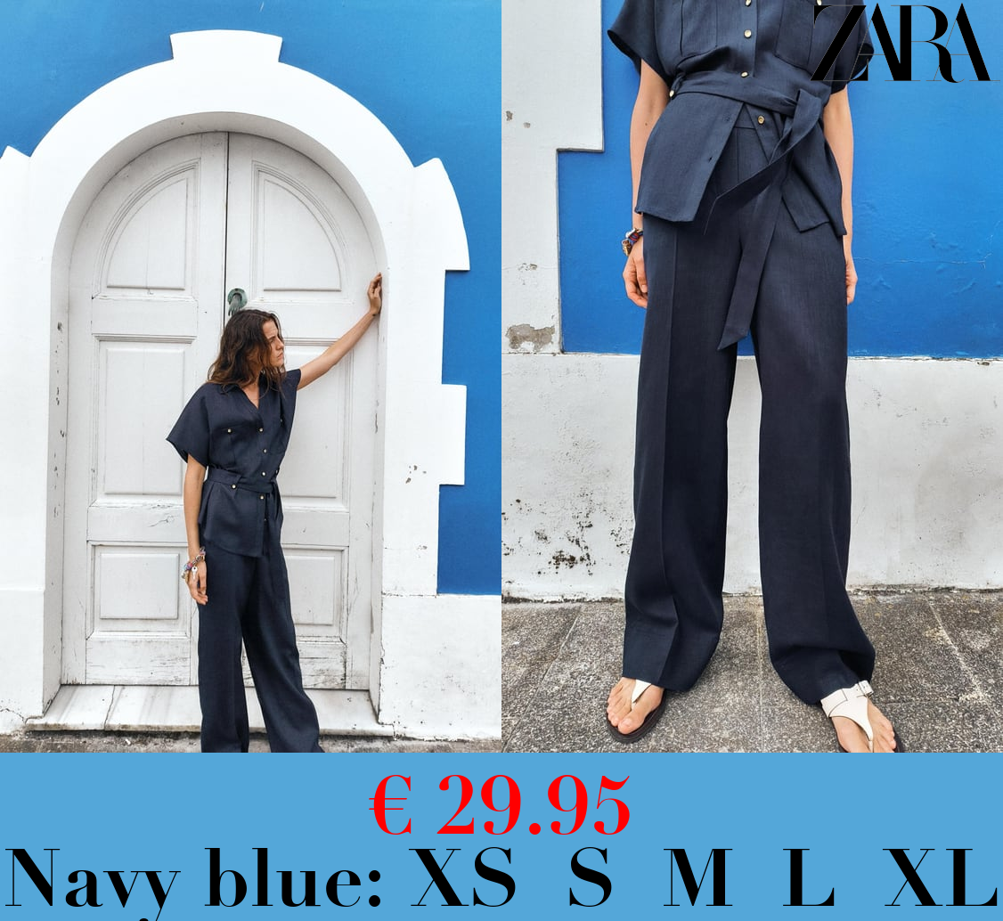 € 29.95 LINEN BLEND STRAIGHT-LEG TROUSERS WITH BELT