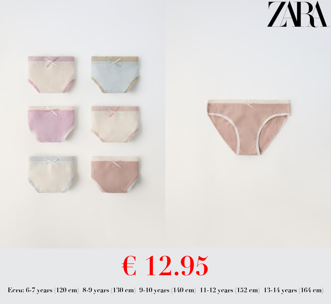 € 12.95 6-14 YEARS/ PACK OF SIX RIBBED BRIEFS WITH BOW