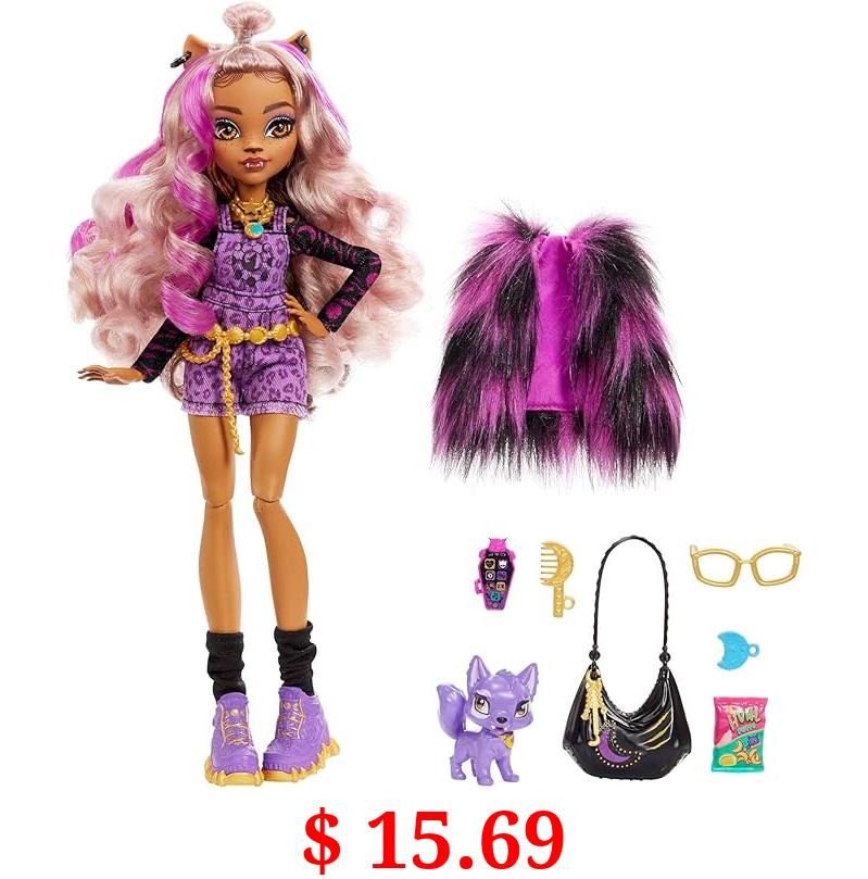 $ 15.69 Monster High Clawdeen Wolf Fashion Doll with Purple Streaked Hair, Signature Look, Accessories & Pet Dog Medium