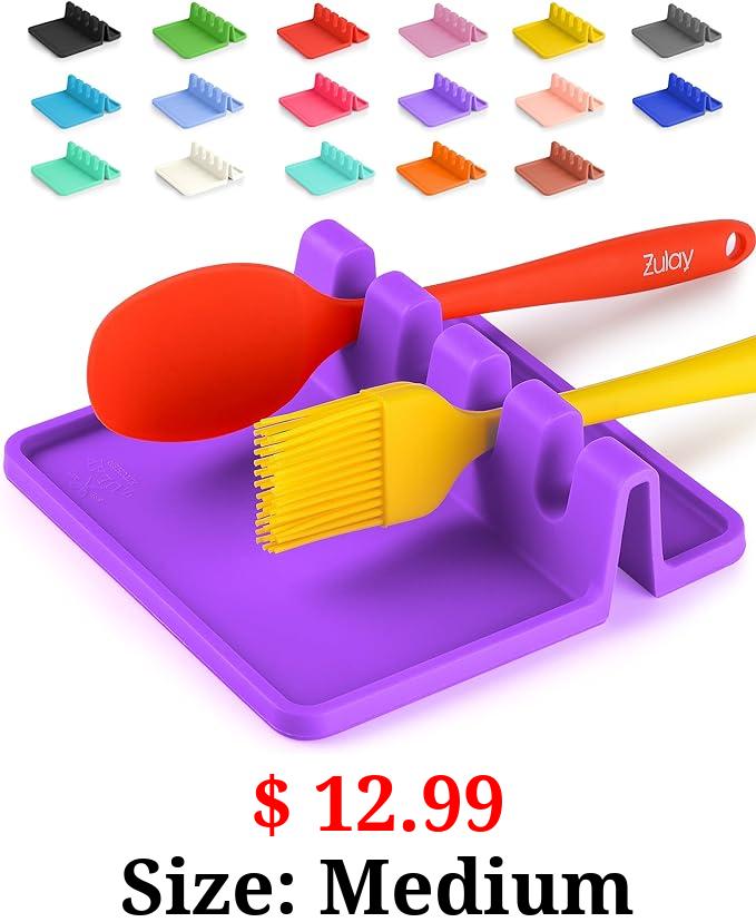 $ 12.99 Size: Medium Zulay Kitchen Silicone Utensil Rest with Drip Pad for Multiple Utensils - BPA-Free, Heat-Resistant Spoon Rest & Spoon Holder for Stove Top - Kitchen Utensil Holder for Ladles & Tongs - Chive Blossom