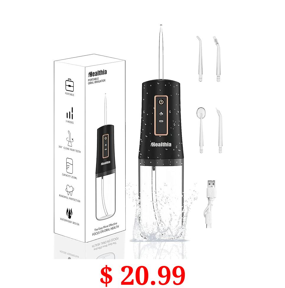 $ 20.99 IHealthia-Water-Flosser-Teeth-Cleaner, Rechargeable - Waterproof, Portable Cordless Dental Oral Irrigator, Water flossers for Teeth, 3 Modes 4 Nozzles, for Home&Travel Elegant Black