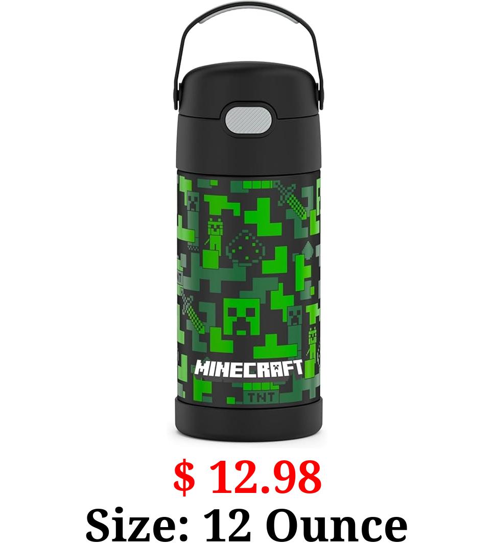 $ 12.98 Size: 12 Ounce THERMOS FUNTAINER 12 Ounce Stainless Steel Vacuum Insulated Kids Straw Bottle, Minecraft