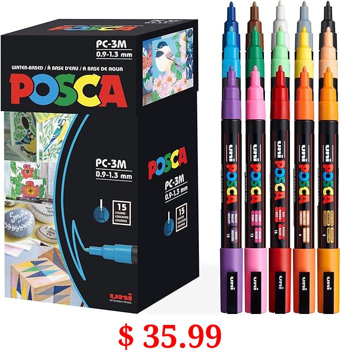 $ 35.99 15 Posca Paint Markers, 3M Fine Posca Markers of Acrylic Paint Penswith Reversible Tips | Posca Pens for Art Supplies, Fabric Paint, Fabric Markers, Paint Pen, Art Markers