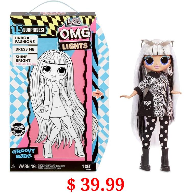 $ 39.99 LOL Surprise OMG Lights Groovy Babe Fashion Doll with 15 Surprises Accessories Set | Includes Fashion Doll and Magic Black Light Surprises| Great Gift for Girls | Collectible