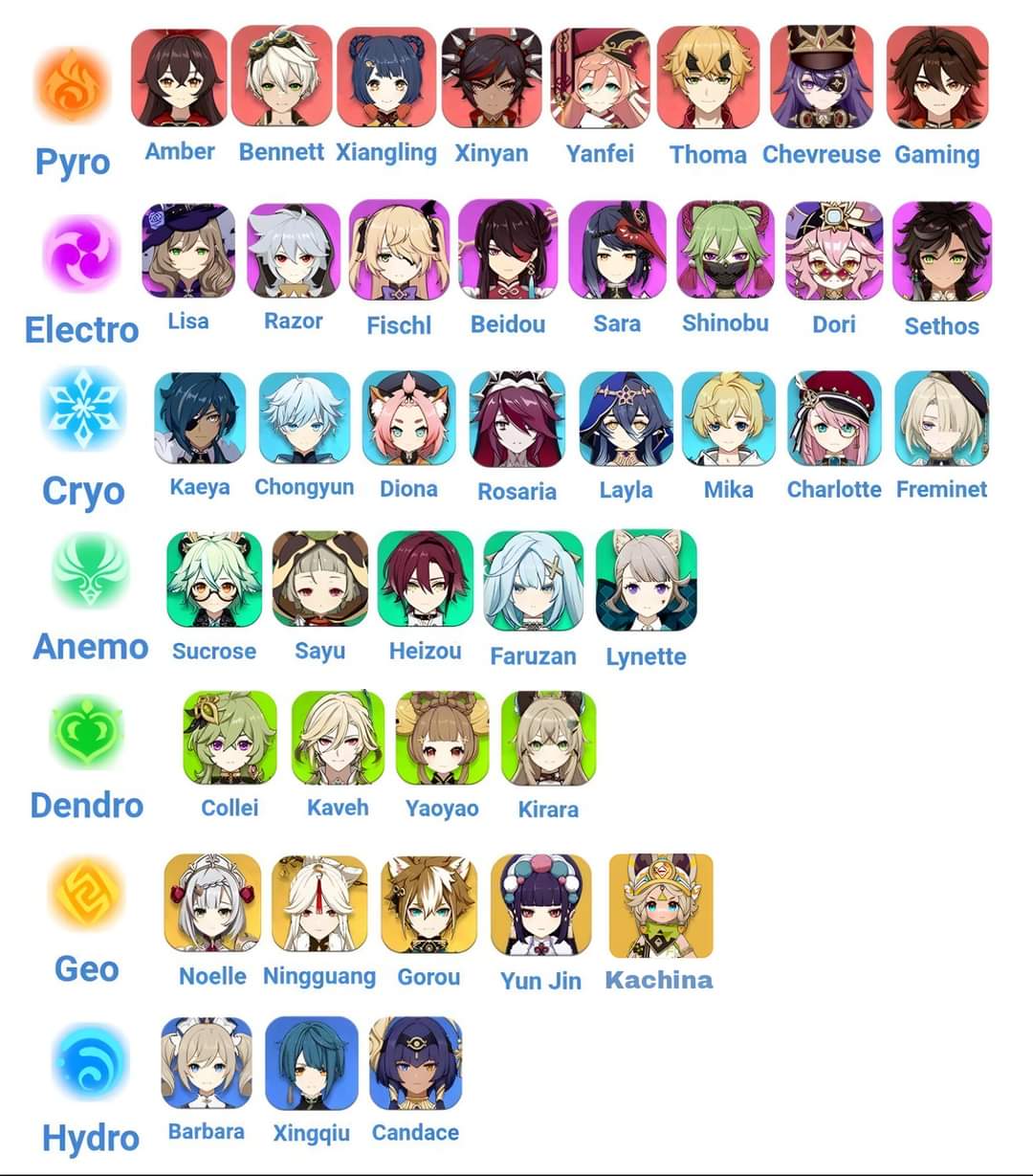 Все персонажи по стихиям 117 фото