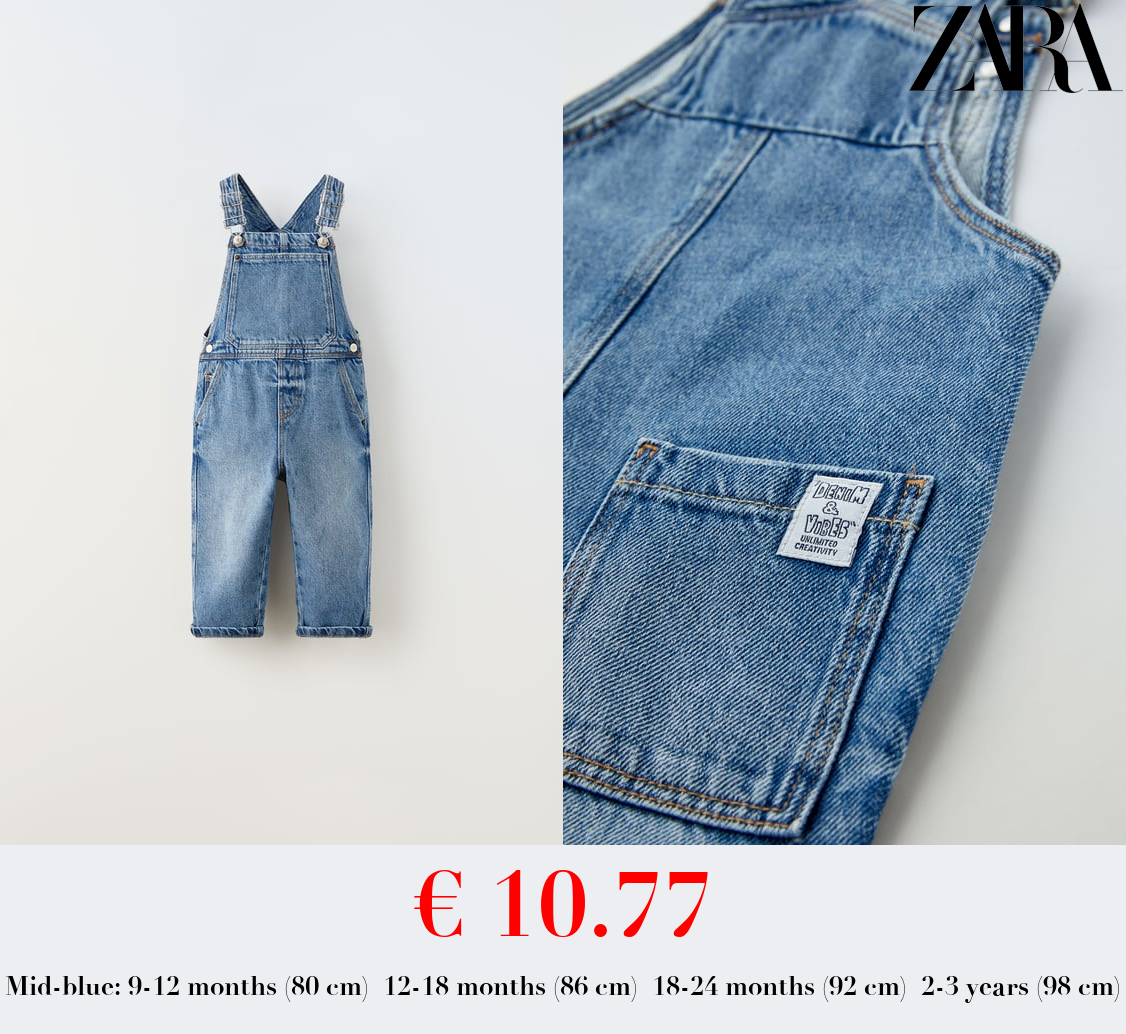 € 10.77 DENIM DUNGAREES WITH LABEL APPLIQUÉ