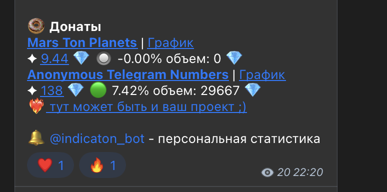 Любой холдер $ICTN и/или indicatonCraftNFT может оставить донат для добавленного в @indicaton проекта в боте @indicaton_bot