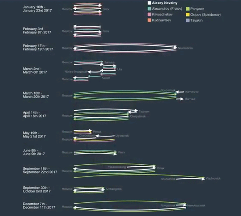 Затем следователи изучали несколько других ниточек, в том числе подробно проверяли личности всех, с кем разговаривал по телефону руководитель научного центра «Сигнал», где разрабатываются вещества. Оказалось, что 6 июля 2020 года он очень плотно общался с разными сотрудниками ФСБ, которые раньше не попадали в поле зрения Bellingcat. Если раньше руководитель «Сигнала» общался с ФСБ раз в месяц, то теперь за один день состоялось 15-20 звонков.