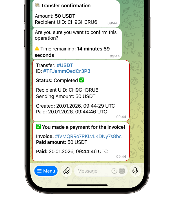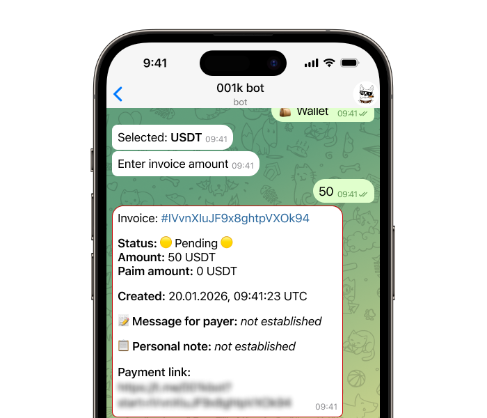 Invoice in 001kBOT is a convenient way to issue invoices directly via Telegram, without complex forms or external services. Creating an invoice takes only a few clicks and supports both one-time and recurring payments.