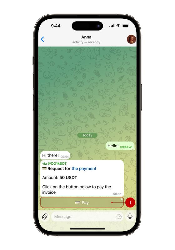 Step 1. After receiving a message with the invoice, click the “Pay” button